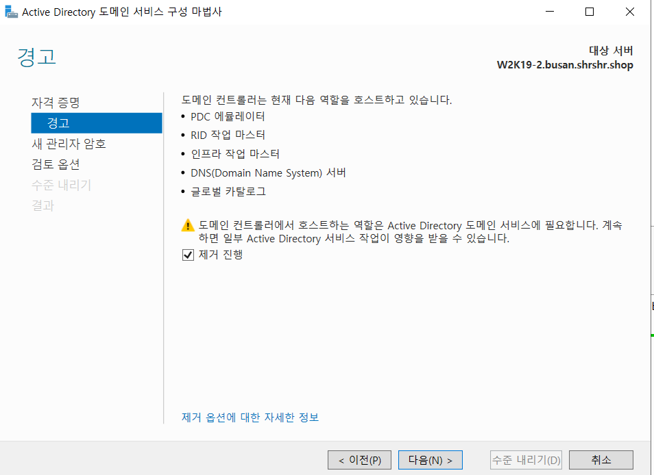 물론 다른 도메인 컨트롤러와 연관이 없거나 (마지막일 경우) 모든 도메인 컨트롤러를 싹 내리는 경우는 예외다.