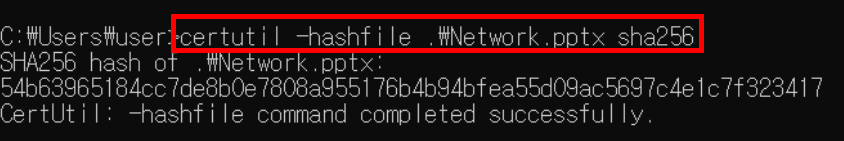 # certutil -hashfile .\Network.pptx sha256