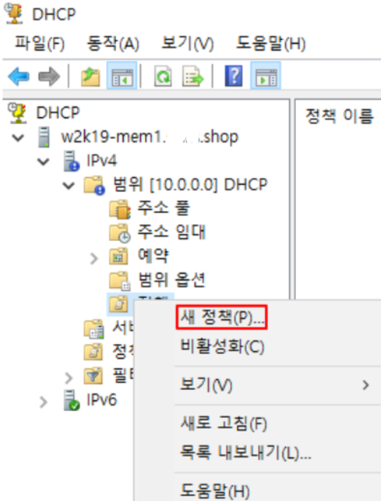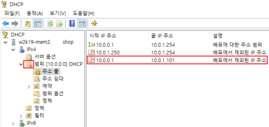 멤버 서버에 DHCP 서버 설정을 구성한다. (DHCP 서버 구성은 이전글 참조)