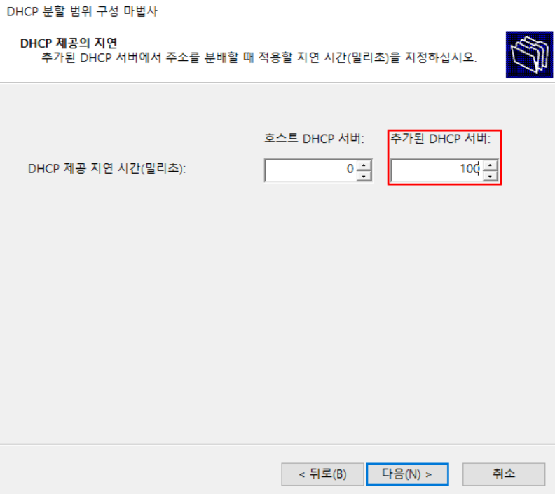 주DHCP와 보조 DHCP 구분을 위한 응답 지연 시간 부여