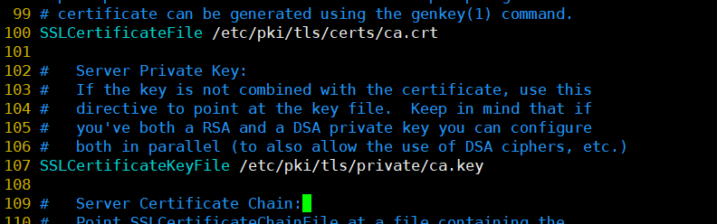 3. 이전 SSL 설정 일부가 선행되어야 한다. SSL이 설치돼 있어야 하고, 인증서와 키가 있어야 한다.