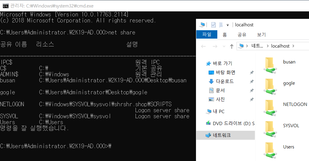 아래와 같이 net share 명령어로 어떤 폴더가 공유 중인지 확인 가능하다.